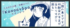 【作者名】 多摩川クロ 【サークル名】 たまがわ古書 【取り扱いジャンル】 ファンタジー、SF、少年漫画 【活動】 DL販売、オンライン掲載、オフイベント参加、WEBイベント参加 『Κασσάνδρα』(カサンドラ) […]